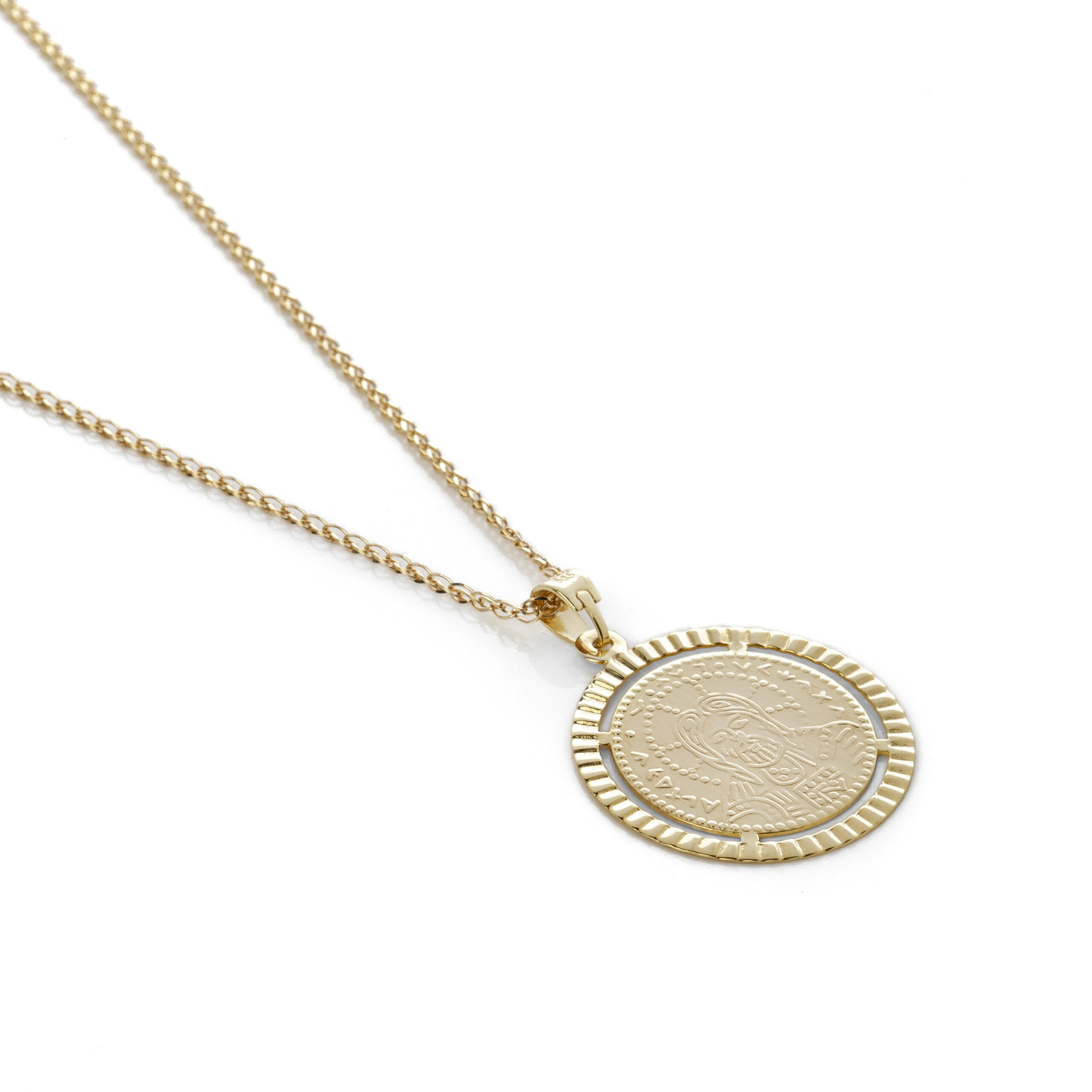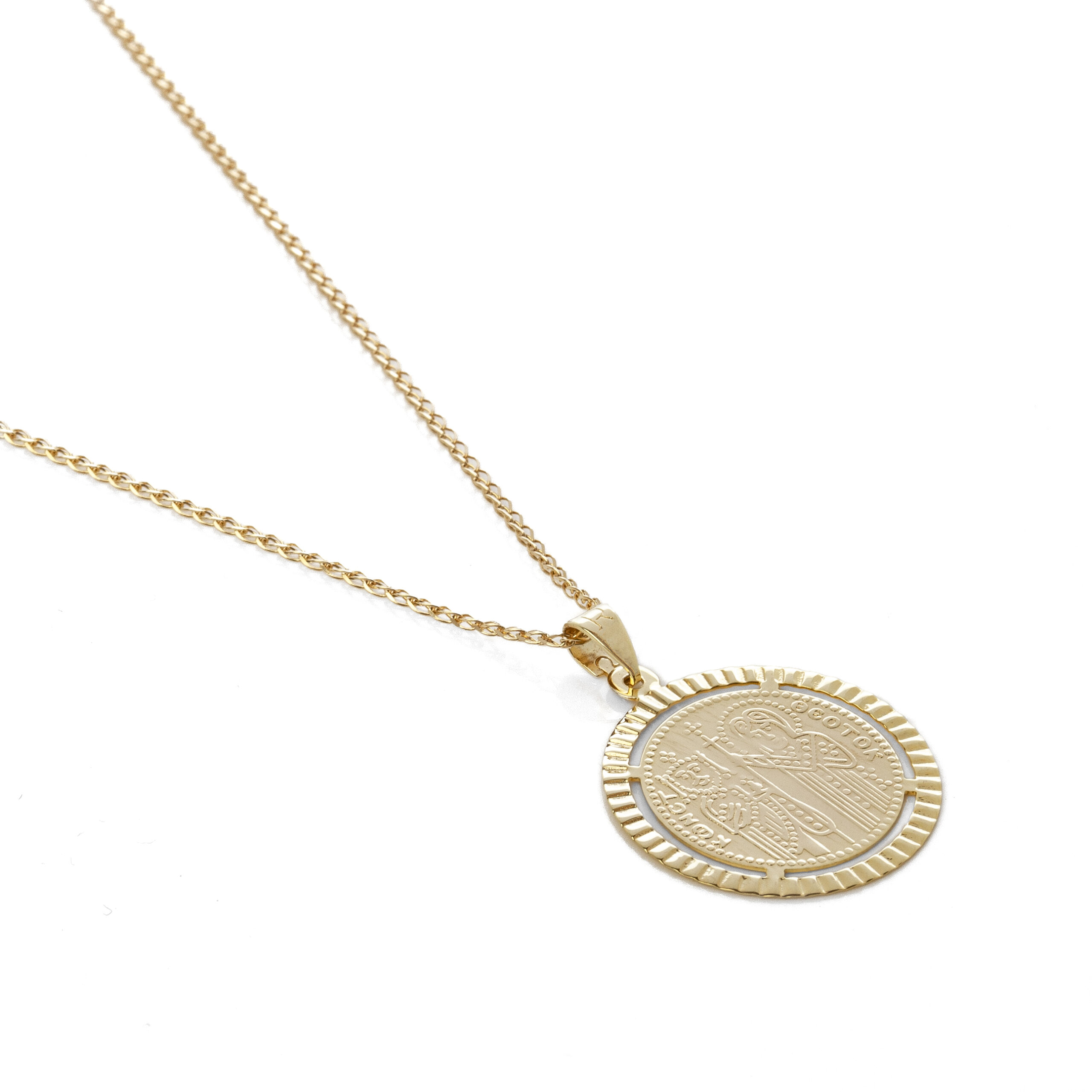 Χειροποίητο κωνσταντινάτο με αλυσίδα, κατασκευασμένο από κίτρινο χρυσό 14 καρατίων. Στην μία όψη απεικονίζεται ο Άγιος Κωνσταντίνος μαζί με την Αγία Ελένη και στην άλλη όψη απεικονίζεται ο Παντοκράτορας. Το κωνσταντινάτο έχει περιμετρικά ακτινωτή στεφάνη.